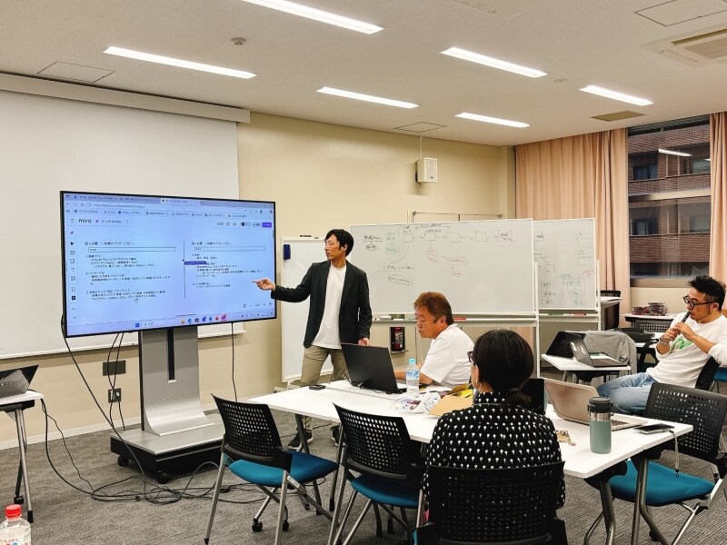 実際のプロジェクトの進行状況をもとに、課題をどう整理し、どんなアプローチで解決につなげるかを考える“実践型”の学びが中心です。異なる業界や職種の人が集まるからこそ、互いの視点が刺激となり、新しい発想や気づきが生まれるのもこの場ならではです。