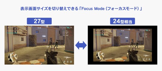 Focus Mode機能は27型の画面に24型相当の画面サイズで映すことができるようになる機能です。