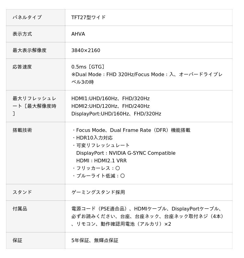 ・特長1. DFR(Dual Frame Rate)機能搭載!4K/160Hz ⇔ FHD/320Hzをリモコンでワンタッチ切替可能