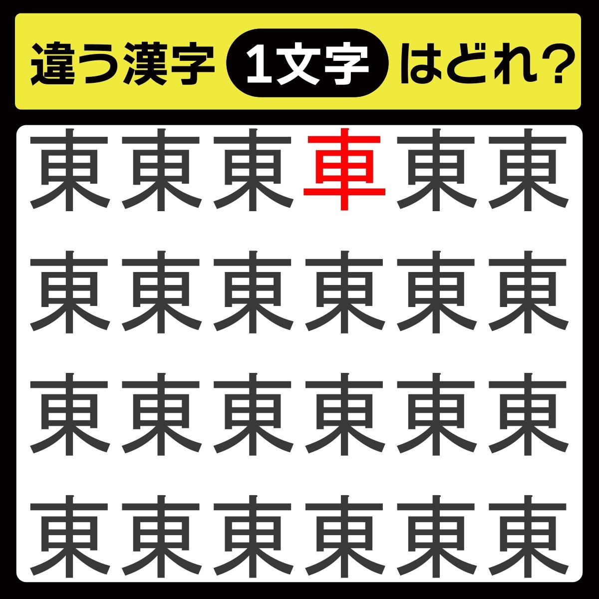 毎日配信中「毎日脳トレ」の時間です! 本日のクイズは「漢字のまちがい探し」に挑戦♪ 同じ漢字が並んでいるように見えますが、実は1つだけ違う漢字が……。よ~く探してみてください!