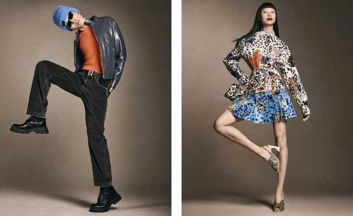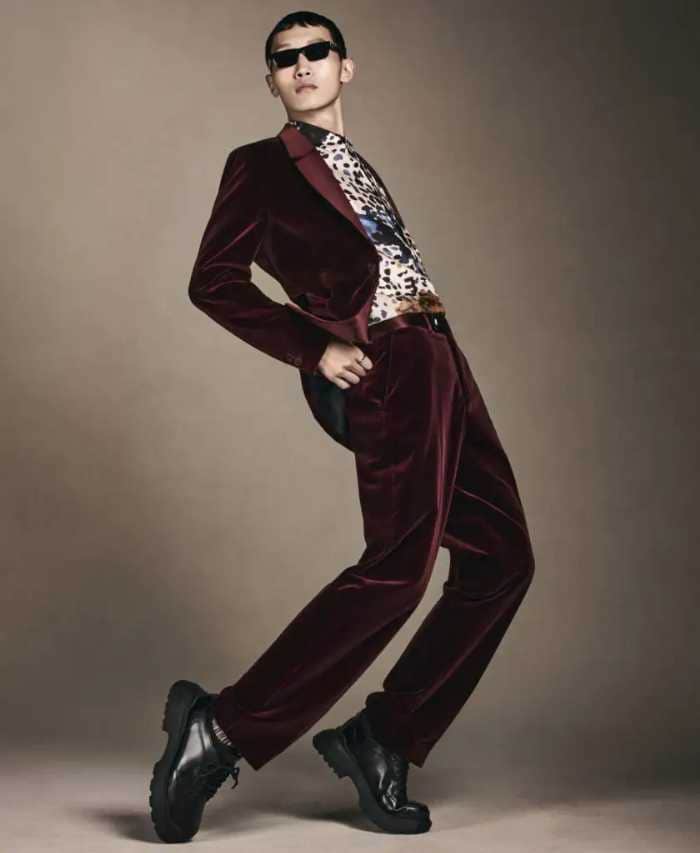 メンズではジュエルトーンを重ねたタキシードや、バタフライプリントのシャツなど、軽やかで詩的なムードに。ウィメンズと共鳴するデザインが、時代と性の境界を超えていきます。