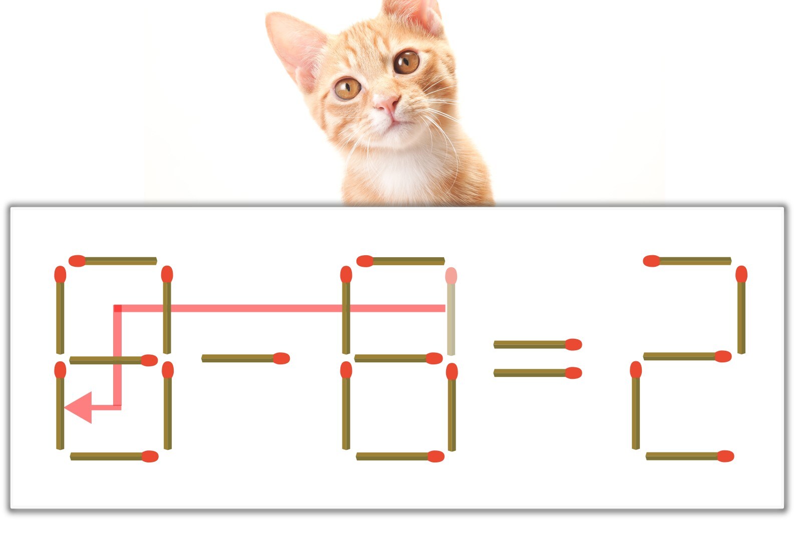 「8」のマッチ棒を1本、左にスライドさせて「8」を作り、「8-6=2」にする。※解答は複数ある場合があります。