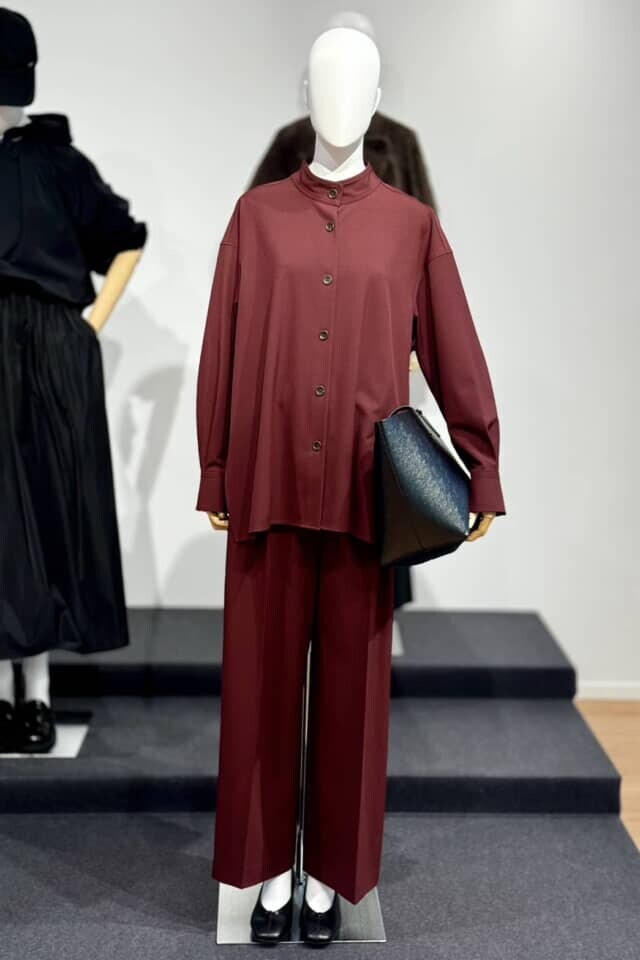 ダークレッドを全身にまとえば、ぐっと洒落たムードに。上下で合わせれば着るだけで旬の空気を纏え、単品使いすれば着回し力も抜群です。