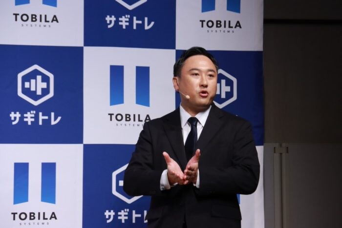 10月29日に都内で行われた発表会には、トビラシステムズ株式会社 代表取締役社長の明田篤さんが登壇。