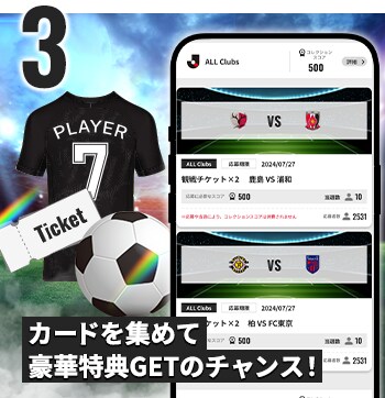 カードを集めるとポイントが貯まり、「Jリーグアウォーズ参加券」や「サイングッズ」などのリアルな特典に応募が可能!