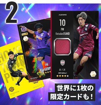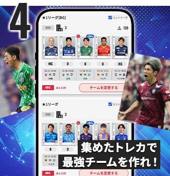 さらに集めた選手カードは「実際のJの試合成績」に基づいて勝負が決まる「ファンタジー」で遊べる!スコアを競い、ランキング上位を目指そう