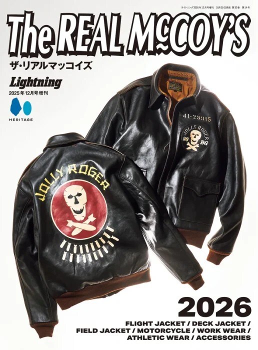 毎年恒例となっているThe REAL McCOY’Sのブランドムック。本年もついに完成! 今回は「ジョリーロジャース」のエンブレムを携えたA-2を表紙に迎える。