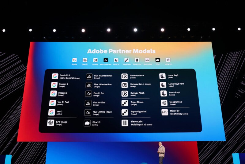 それに加えて、選択肢を増やすためにGoogleのGeminiやVeoやNano Banana、OpenAIのChatGPT Image、Flux、Runway、Pika、Topaz、ElevenLabsのMultilingualを使えるようになった。これからは、アドビのCCアプリを使っている時に、それぞれのAIの得意分野を使い分けてクリエイティブ作業を行うことができるのだ。