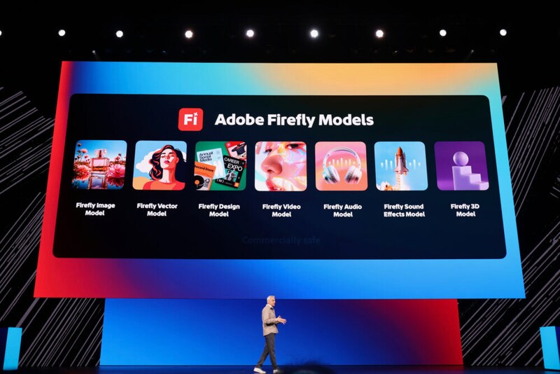 アドビのAIのメインエンジンであるFireflyは、イメージモデルがFirefly Image Model 5になり、Video ModelとAudio Modelが充実した。これらアドビ自社製のFireflyは、権利的にクリアなデータしか学習しておらず、安心して使えることが前提となっている。