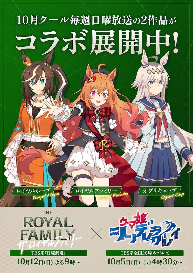 あわせて、TBS系日曜劇場『ザ・ロイヤルファミリー』とのコラボ最新情報も発表された。劇中に登場する競走馬「ロイヤルファミリー」をモチーフに、『ウマ娘 シンデレラグレイ』のタッチで描き下ろした“オリジナルのウマ娘”ビジュアル第2弾が公開。オグリキャップ、ロイヤルホープと並ぶ新イラストとなっており、この「ロイヤルファミリー」ビジュアルを使ったグッズ化も決定している。