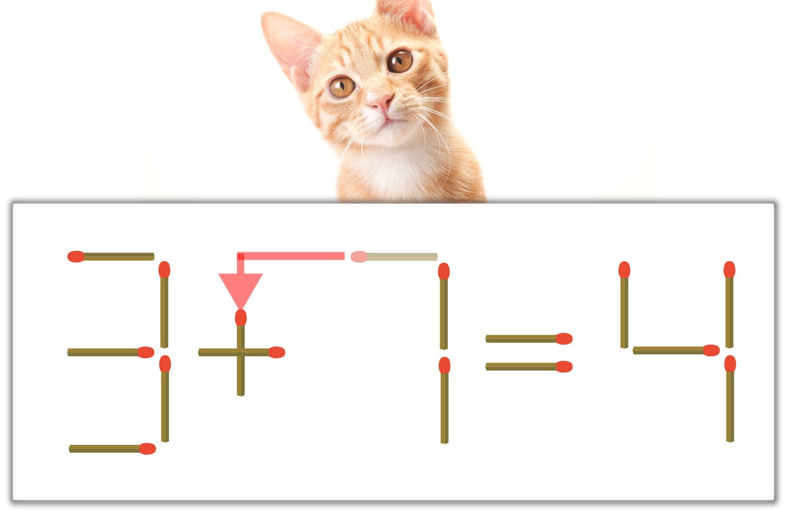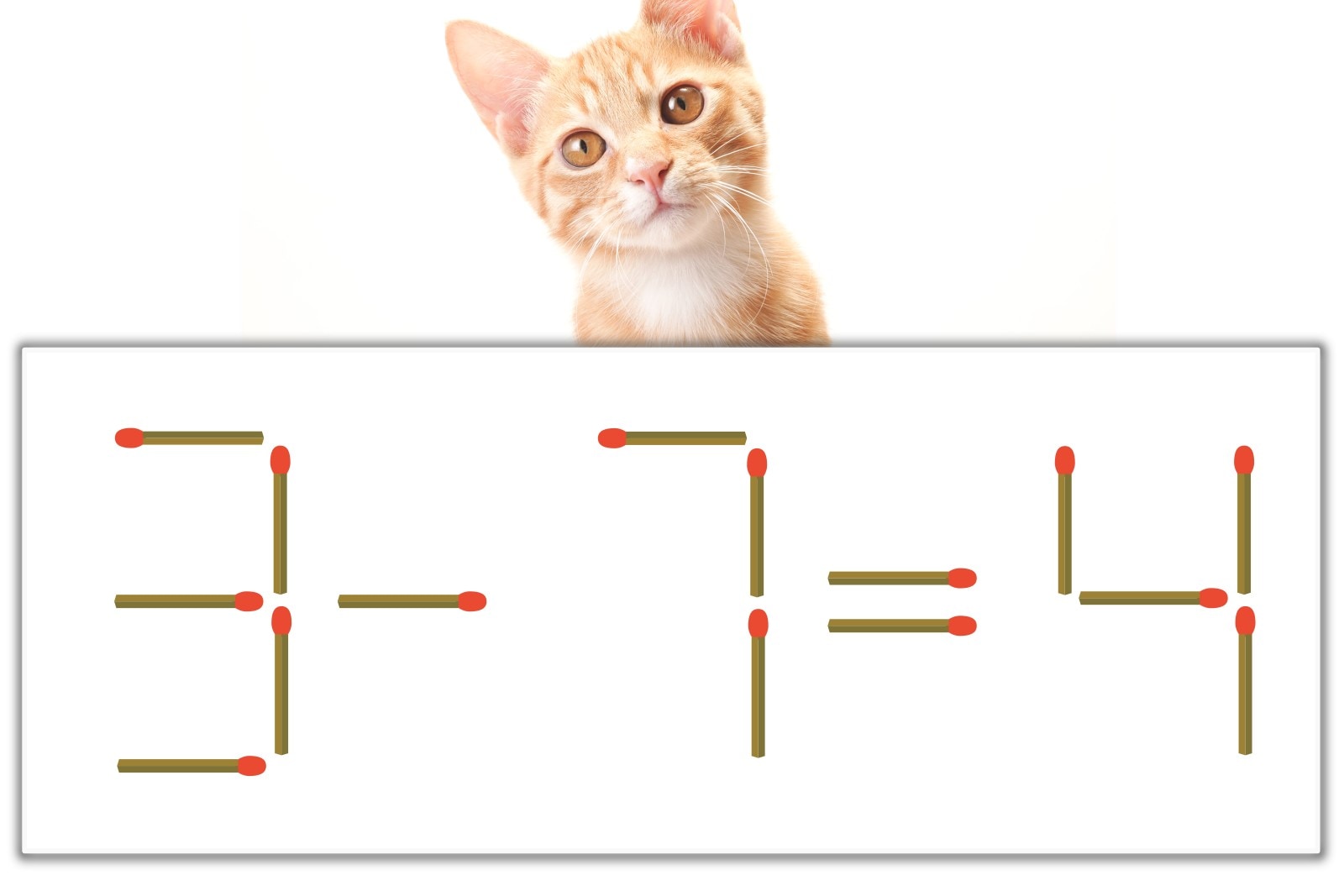 「7」のマッチ棒を1本、左にスライドさせて「+」を作り、「3+1=4」にする。※解答は複数ある場合があります。