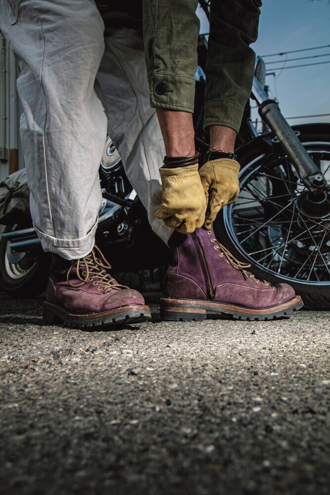 ハーレー乗りの間で最近話題の「SPPN(スッピン)」の別注ブーツ企画が進行中。通常の商品はブラックの茶芯、パープルとタバコのラフアウトという色展開ですが、それともまったく違うカラーとパーツの仕様でオーダーしています。まだサンプルは完成していませんが、コレ絶対カッコいい! というブーツが完成する予感。ご期待ください!