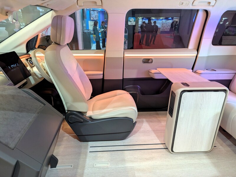 車体は親会社である鴻海(ホンハイ)が開発するEVプラットフォーム「Model A」をベースに開発。全長4.3mクラスのコンパクトミニバンサイズで、実際に乗り込んでみると、広々とした車内レイアウトに家電メーカーならではのこだわりが随所に見られます。