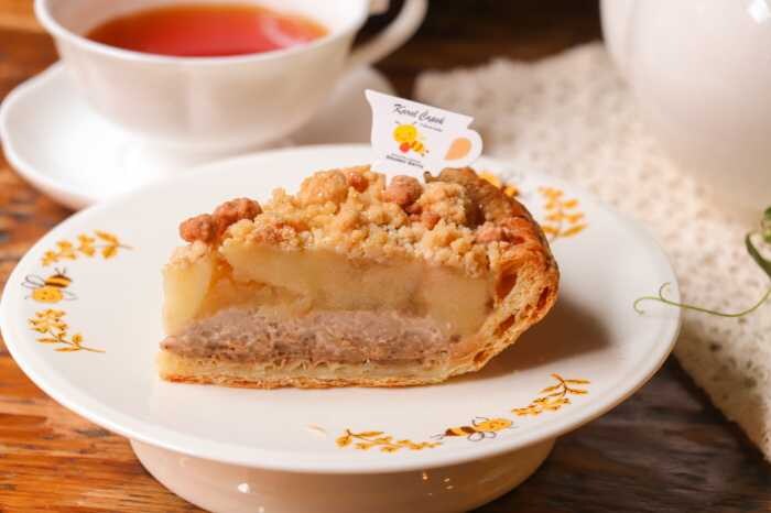 トップには香ばしい“紅茶クランブル”をトッピングし、りんごのジューシーな甘酸っぱさが絶妙にマッチ。