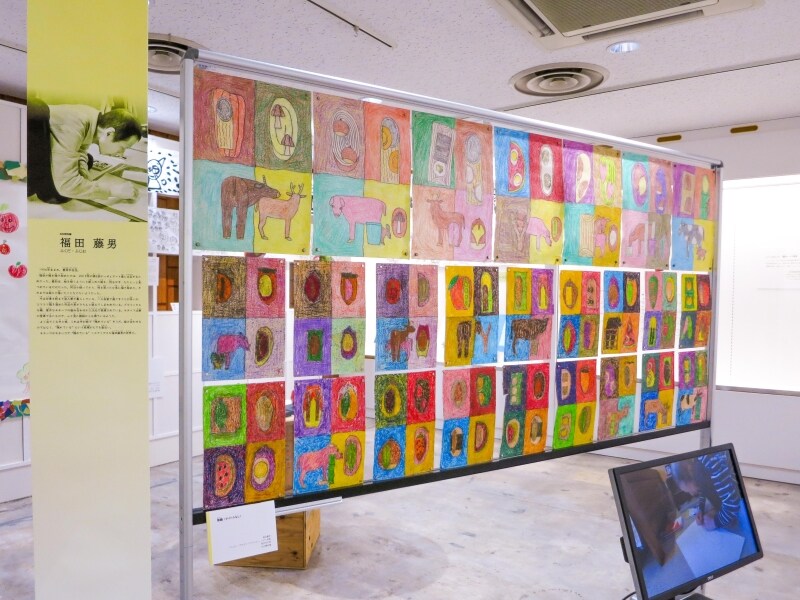 展示の前半にあたるコーナー「ふつうのとくべつ」では、但馬地方を中心に活動するNPO法人がっせぇアートのメンバーをはじめ、障害のある方々による作品が展示されています。