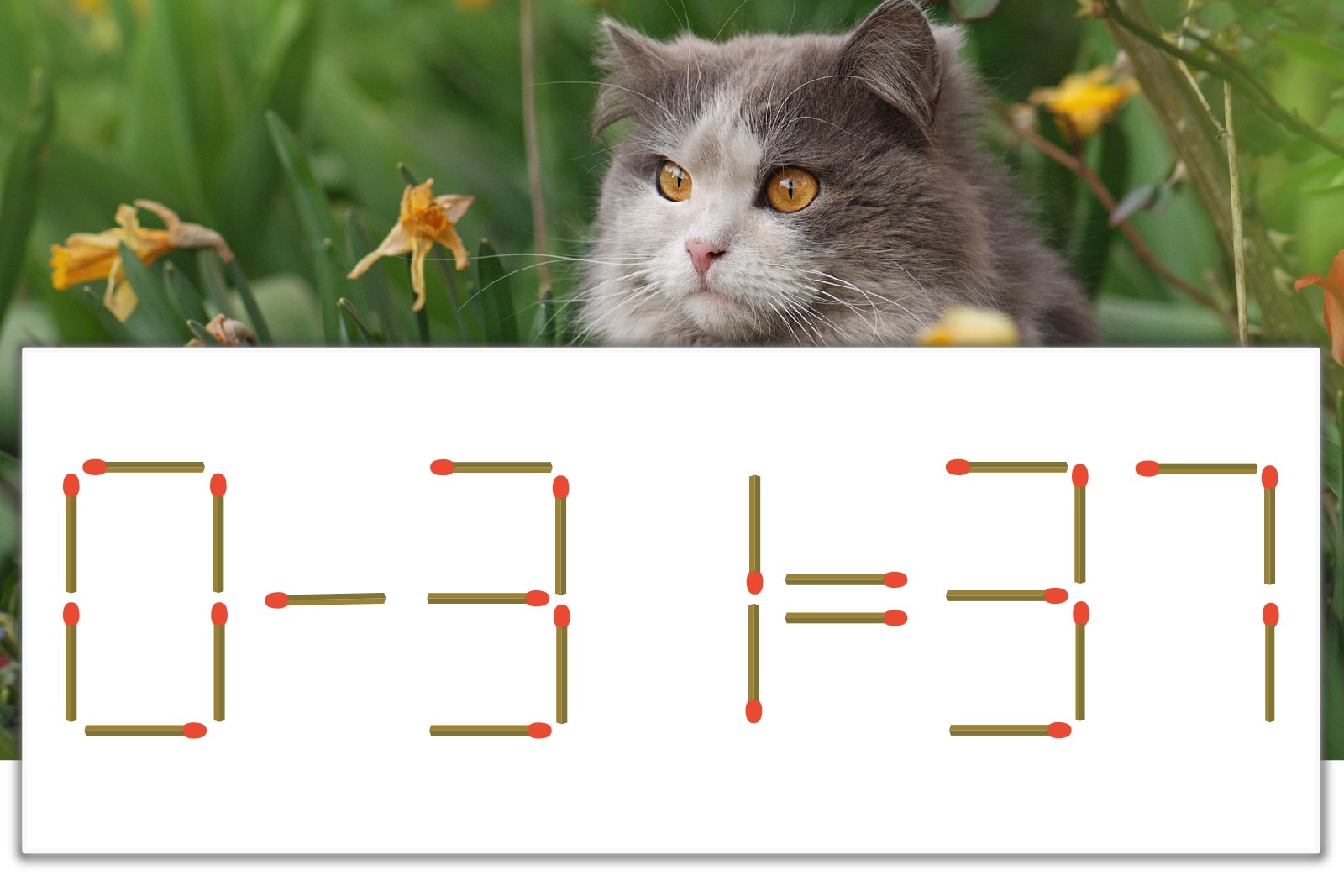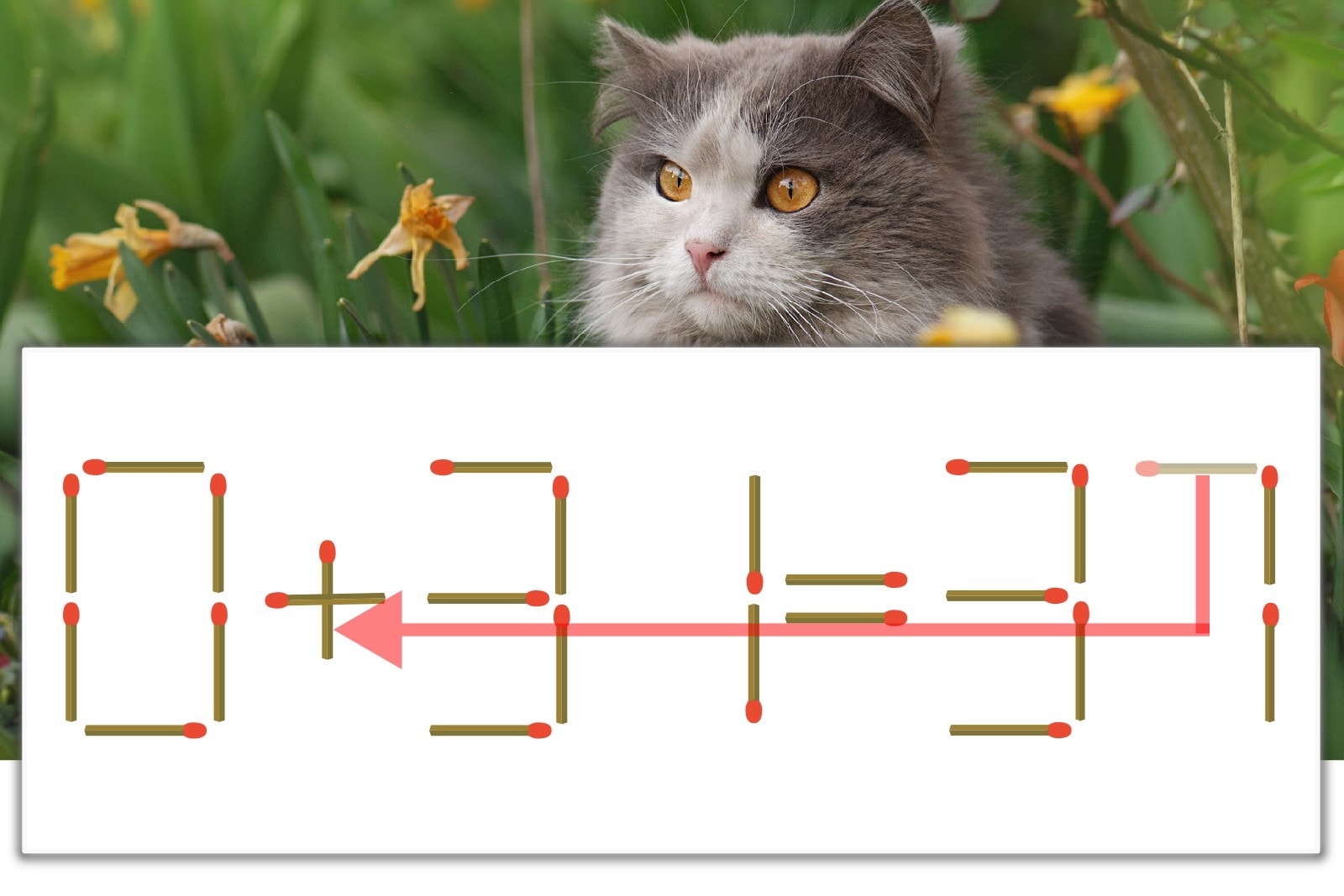 【問題】マッチ棒を1本動かして式を正しくしてください。