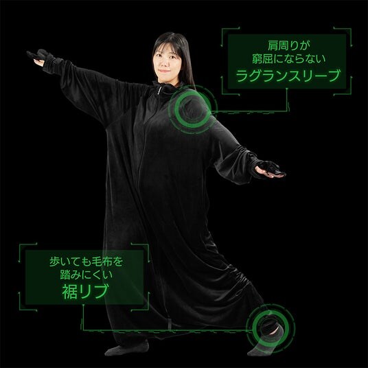 ゲーミング着る毛布「ダメ着」シリーズは、ゲーマーの全身をぬくもりで包み込む、禁断の人型着る毛布として2018年に誕生しました。これまでのモデルは、冬の寒さから全身を徹底的に守る「保温性」を追求してきましたが、今回の新作『ダメ着 ストレッチ』は、そのぽかぽか遺伝子を受け継ぎつつ「だらけやすさ・動きやすさ」を極限まで追求した全身フルカバーウェアです。