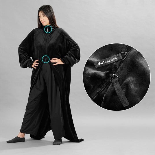 足元から首元までファスナーでしっかり閉じられ、動いても・寝返りをうってもはだけないストレスフリーな設計。