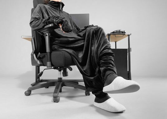 濃密でなめらかかつ、驚異的な伸縮性(当社製品比 約1.5倍以上!)を持つ、ストレッチベロアフリース素材を全身に採用。"着る毛布"と名を称しつつも、"服を着ている"感を感じさせない、ゆったりシルエットの新感覚ルームウェアです。体を大きくひねる、腕を広げる、足を組む、あぐらをかくなど、どんな動きにも柔軟に対応。服が突っ張ることなく、締め付け感・窮屈さを感じにくくなっています。長時間のゲームプレイや休憩時も、動作によるストレスを感じることなく快適に過ごせます。