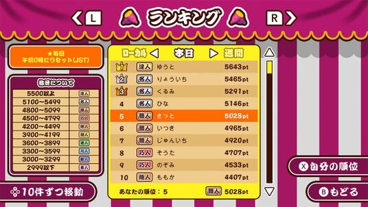 オンライン:ランキングあり