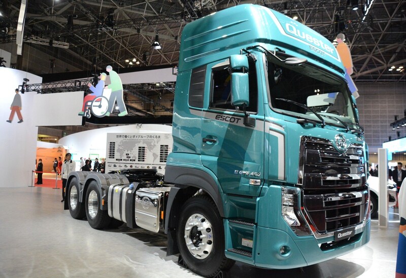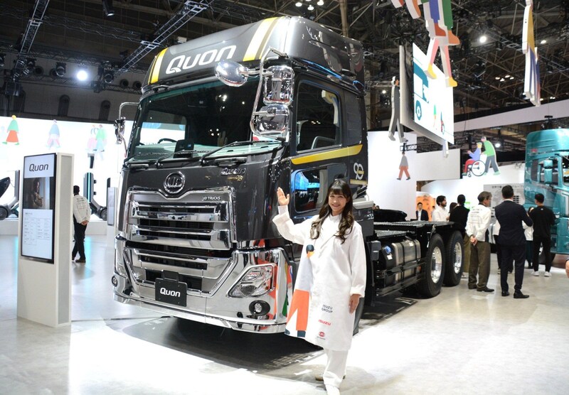 ブースには、いすゞグループのいまを担う車両も展示されている。日本の物流を支える大型トラックの新型「ギガ」は約10年ぶりにキャブエクステリアを刷新。多彩な安全機能を搭載し、快適で安全な走行を提供する。新興国を対象とした大型トラック「Quester」は環境に配慮した最新の排ガス規制「ユーロ6」対応モデル。両車も世界初公開。