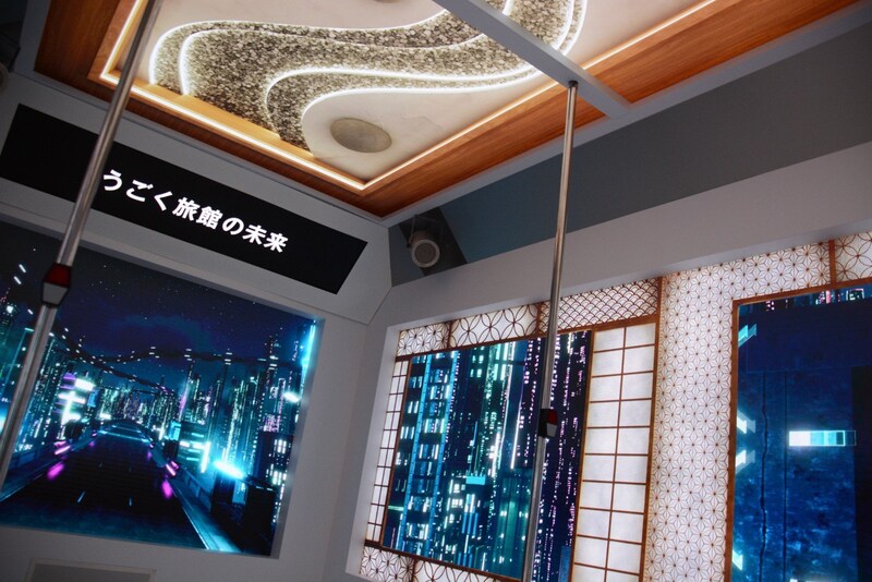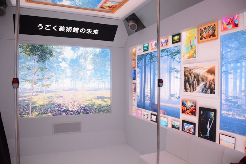 “動かなかった場所”を自由に運ぶ「みんなの未来バス」は、車内のほぼ全面に配したLEDパネルを利用した映像により「うごく美術館」「うごくオフィス」「うごく旅館」に没入できる。