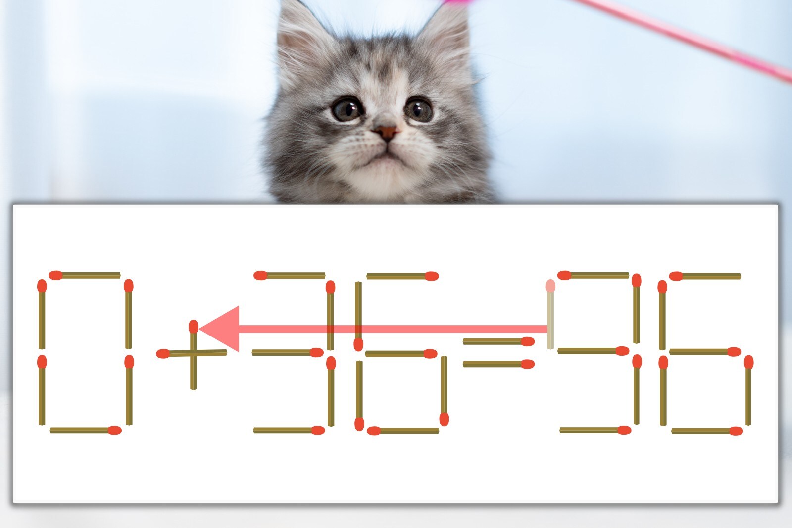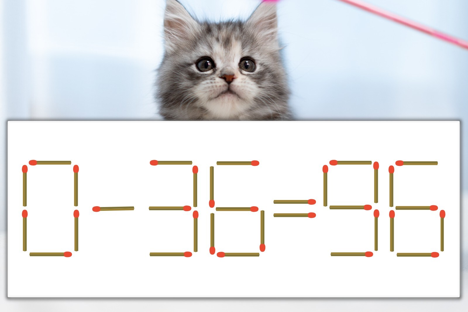 「9」を別の数字に変化させると答えが導き出せます。「9」のマッチ棒を1本移動して、「-」を「+」にしてみましょう。すると、「0+36=36」が成立します。