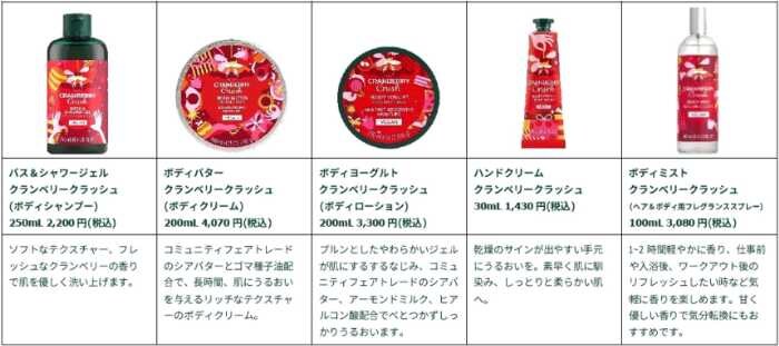・CRANBERRY CRUSH:甘酸っぱいクランベリーとミントの爽やかさ。