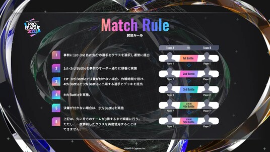 各チームから3名の選手が出場し、チーム単位での構築戦 BO5 にて勝敗を決定します。