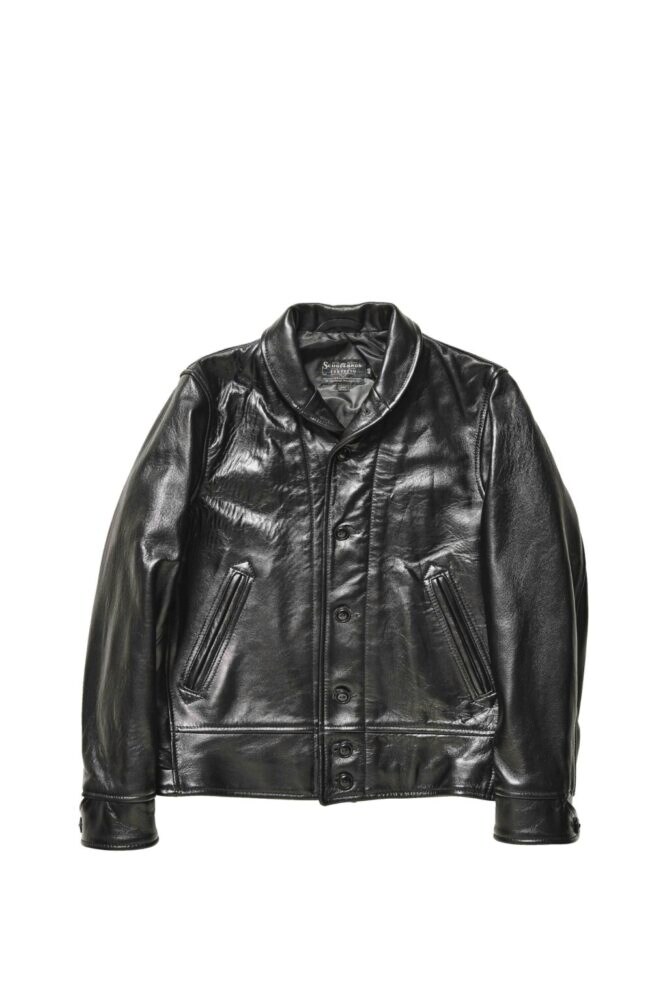 ヴィンテージ感のある面構えのコサックジャケット。戦前のモデルがモチーフとなっているため、特徴的なショールカラーやボタンフロントが上品さを演出する。厚みのあるシープスキンが生み出す自然なシボ感と、茶芯によって強調されていくエイジングは、着込むほどに深い味わいを増していく自分だけの一着になる。19万8000円