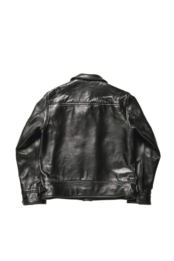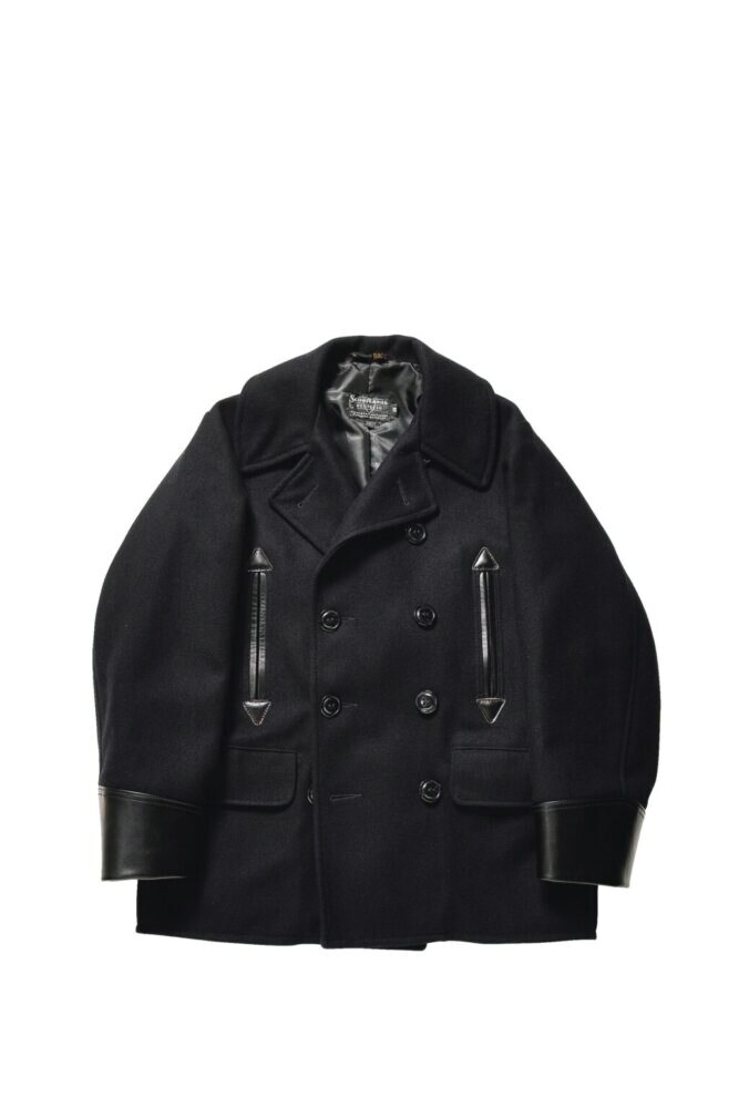 日本の気候に合わせて開発された24ozのウールメルトンと馬革で仕立てたピーコート。高い防寒性を備えつつも、日常使いに適した設計が特徴。日本で鞣した茶芯の馬革を本国にて生産したというストーリーもファンに刺さるポイントだ。14万3000円