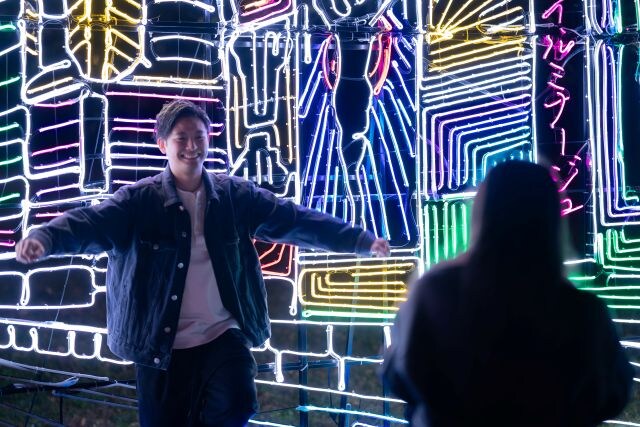 ⼤阪を象徴する名所旧跡を⾊鮮やかなイルミネーションで描く、大阪観光地シリーズが今年も楽しめます。通天閣、寺社仏閣、活気ある市場、レトロな路⾯電⾞などを、カラフルなネオン管で再現する演出は写真映えすると好評です。