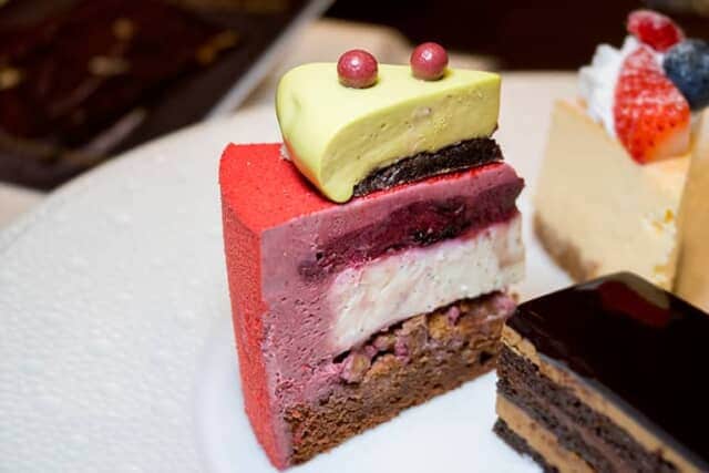 ペストリー料理長の髙田一哉氏が厳選した素材を使い、クリームやガナッシュ、ムースなどをミリ単位で重ね合わせたケーキは、素材それぞれの個性が引き立つ魔法の味を楽しめます。