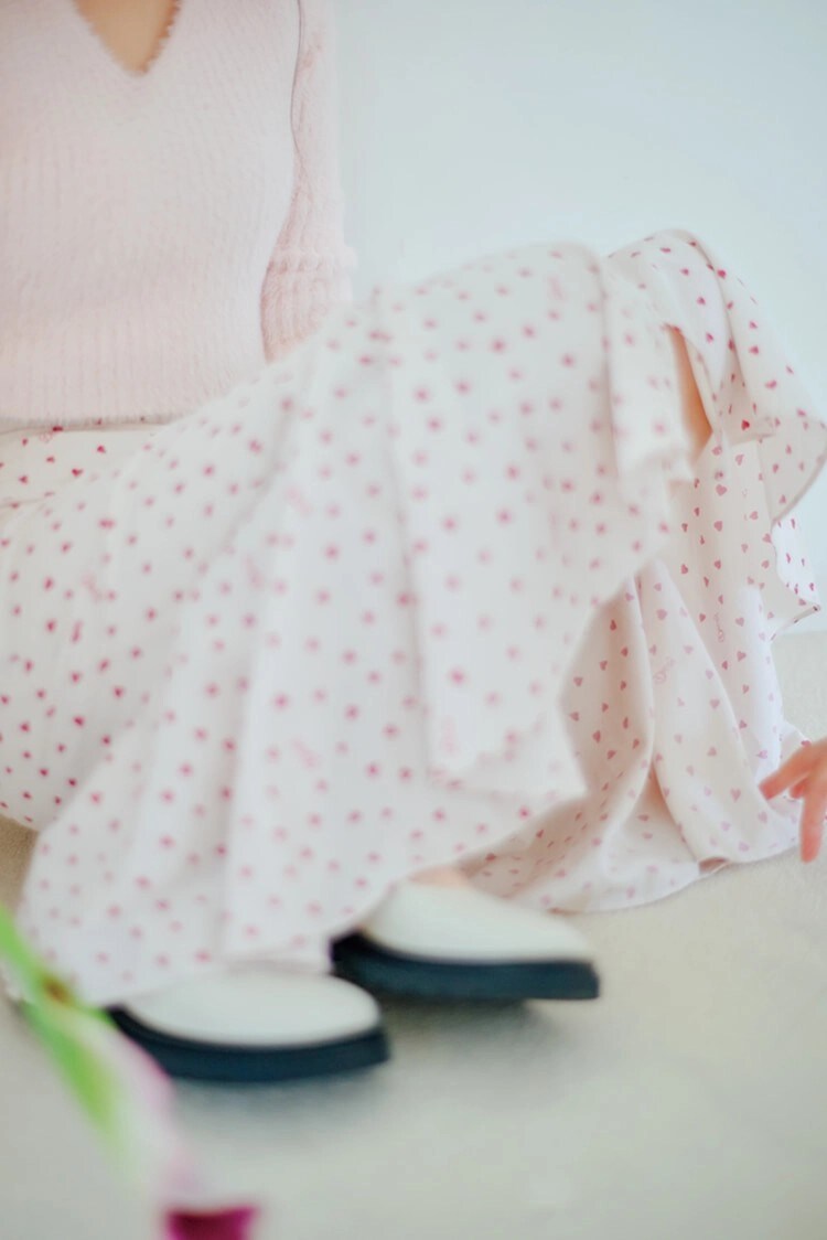 ショートニット 7,920円/MERCU RYDUO ルミネエスト新宿店 小花柄スカート 19,800円/DEICY イヤリング 3,080円/Labikara シュシュ 550円/WEGO