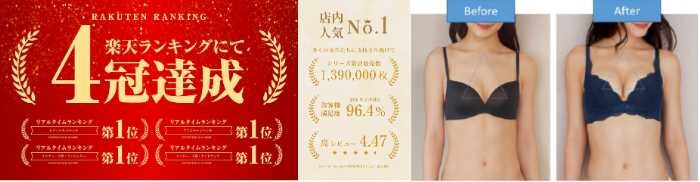 自社調査では満足度96.4%を誇り、楽天市場では総合リアルタイムランキング第1位を獲得するなど、多くの女性の支持を集めています。
