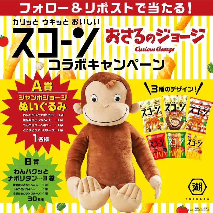 湖池屋の人気スナック「スコーン」から、世界中で愛されるキャラクター「おさるのジョージ」とのコラボレーション商品「スコーン わんパクッとナポリタン」が新登場!2025年9月15日(月)に全国のコンビニで先行発売、9月22日(月)からは全国のスーパーなどでも手に入ります。カリッとサクッとした軽快な食感と、濃厚で本格的なナポリタンの味わいは、子どもから大人まで思わず夢中になること間違いなしです♡