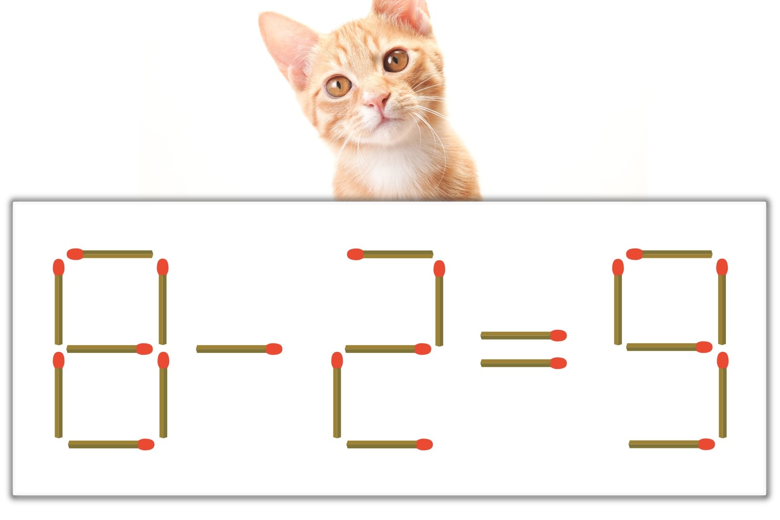 「9」のマッチ棒を1本、左下にスライドさせて「6」を作り、「8-2=6」にする。※解答は複数ある場合があります。