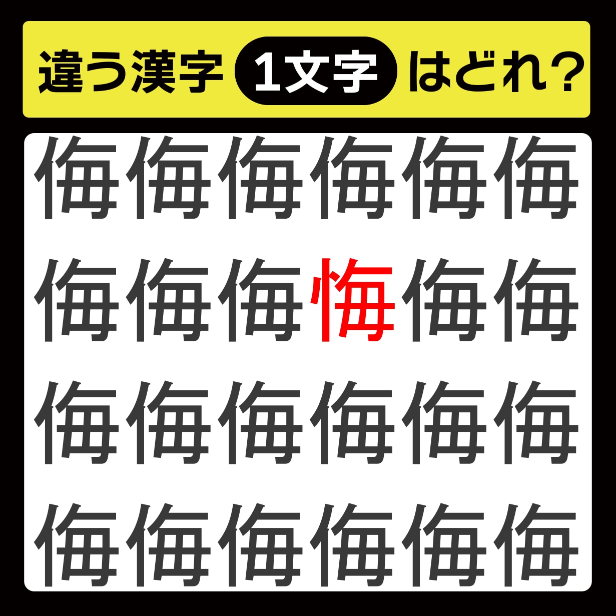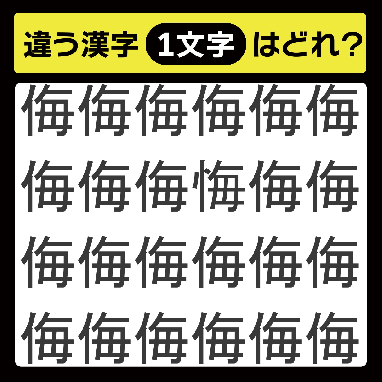 違う漢字は、上から2行目、右から3番目の文字でした!