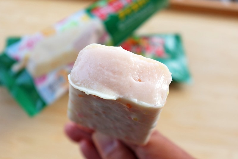 無難なバニラアイスとかが入っていても満足できそうなのに、中身に採用されているのはミックスフルーツ味のアイス。いろいろな味を混ぜているところがまたサクマドロップスらしくていいですよね。