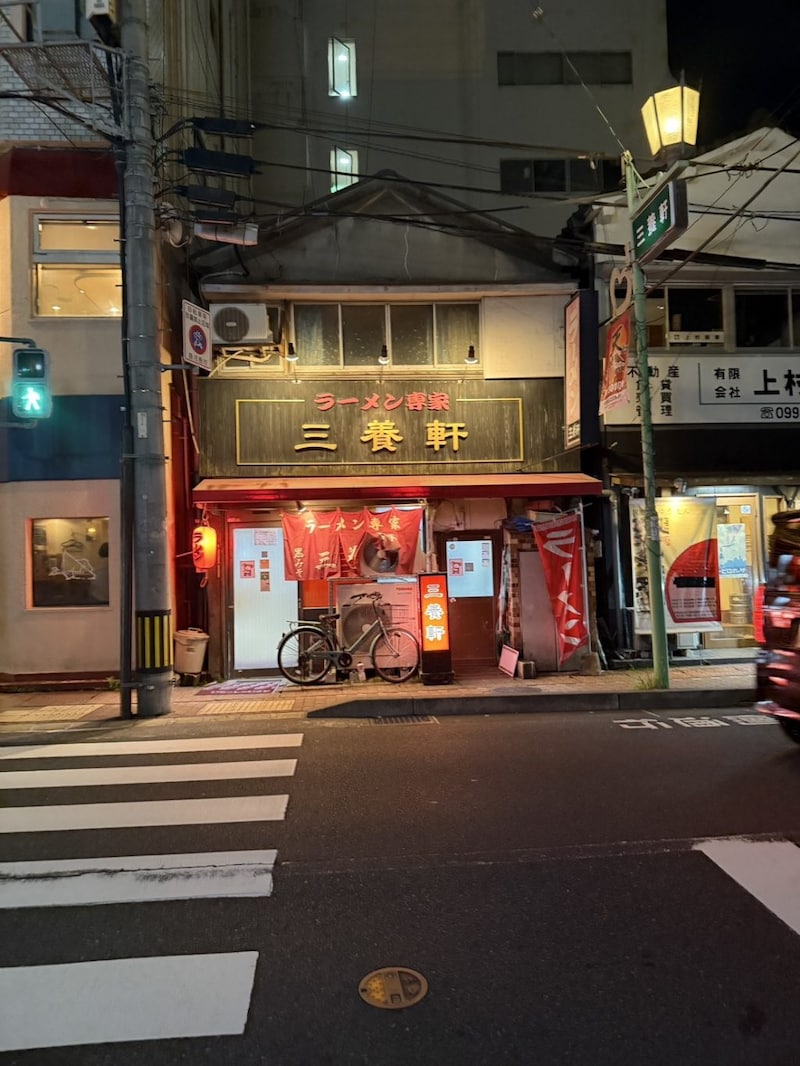 鹿児島ラーメンといえば豚骨・鶏ガラのイメージが強いと思われるが、味噌ラーメンを看板メニューにしているのが三養軒。歴史を感じる店構えであるが、創業はなんと昭和30年 (1955)頃とのことである。