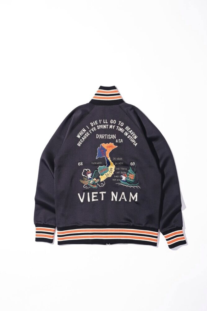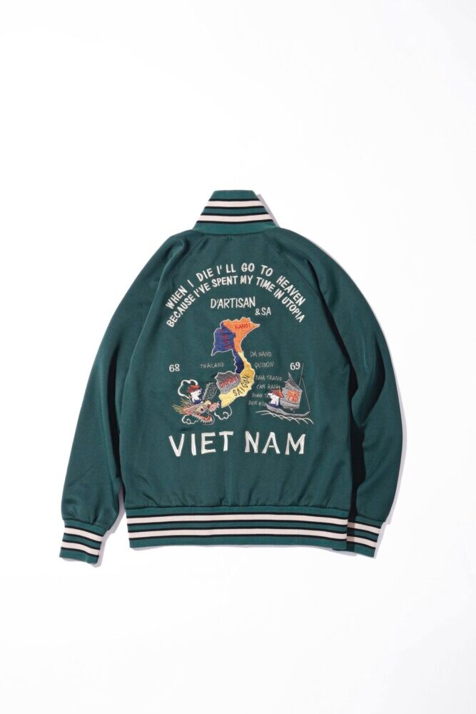 1960年代、ベトナム戦争に赴いたアメリカ兵たちのリクエストから誕生したスーベニアジャケットである「ベトジャン」。ダルチザンでは、当時のベトジャンをモチーフに、トラックジャケットへと落とし込んだ「ベトジャージ」を製作。一年を通して着回しができる、実用性の高いアイテムだ。
