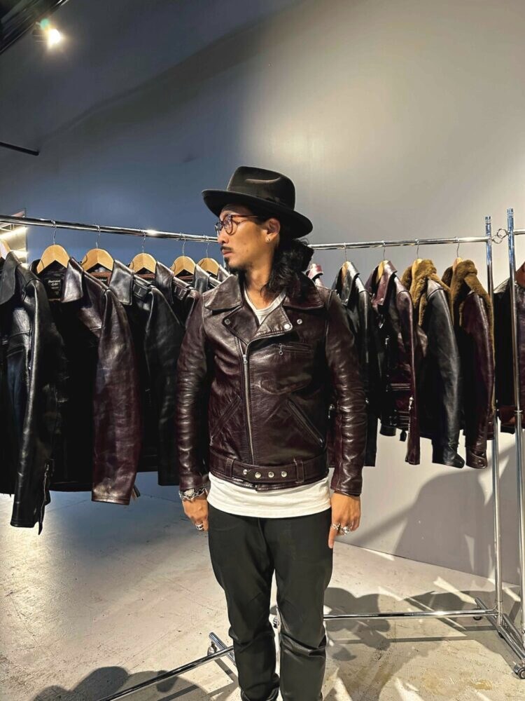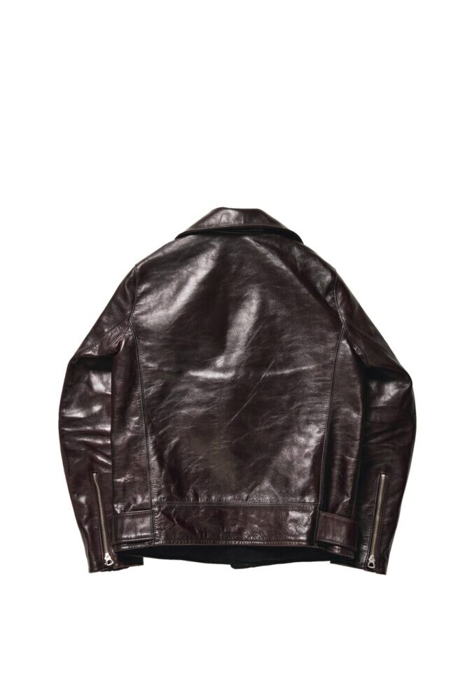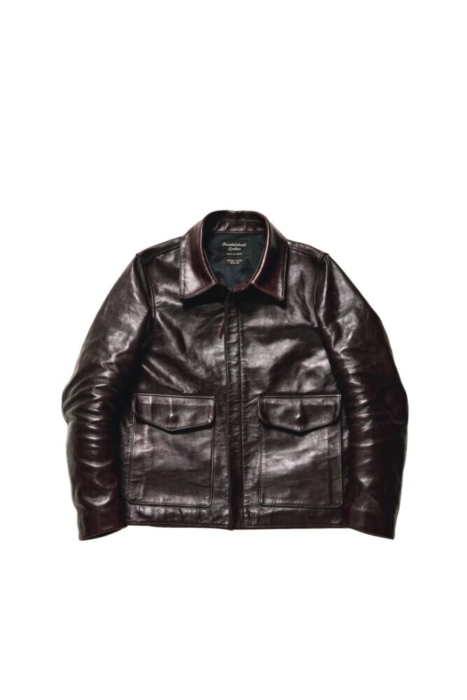 映画『インディ・ジョーンズ』で主演のハリソン・フォードが来ていたことから、通称“インディ・ジャケット“と呼ばれるのがこちらのモデル。アメリカ陸軍航空隊の代表的なフライトジャケットであるA-2の袖と裾のリブを無くしたようなすっきりとしたデザインが印象的だ。1.5㎜厚のフルベジタブルタンニン鞣しの馬革をアニリン染料で仕上げており、着込んでいくうちにくっきりとした皺が刻まれていく。サンドウィッチの茶芯仕様で、経年で出現してくる茶芯も美しい。コーディネイトを選ばないシンプルなデザインも嬉しい限り。21万8900円