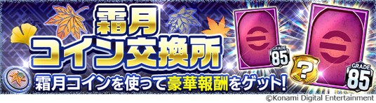 期間中、手に入れた「霜月コイン」を使って、「Aランクセンス付きG85以上ガチャ券」やアイテムと交換できます。