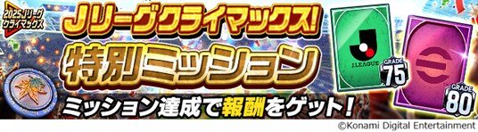 株式会社コナミデジタルエンタテインメントは、モバイルゲーム『Jリーグクラブチャンピオンシップ』(以下、『Jクラ』)で、「Jリーグクライマックス!キャンペーン」を開催していることをお知らせします。