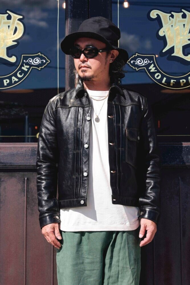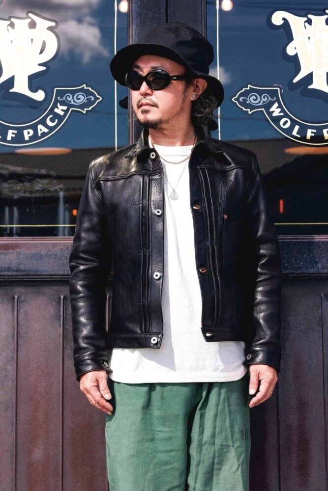 往年のデニムジャケットのデザインを落とし込み、レザーで再構築したリッチモンド。革ジャン界の“Gジャンブーム”は、彼らが作ったと言っても過言ではない。元来、ワークジャケットの袖付けが施されているデニムジャケットだが、パターンを見直し、ライダースジャケットのような袖付けに変更している。そのため、オリジナルのもつ「野暮ったさ」が全くなく、脇周りが非常にすっきりしている。1.2㎜厚のフルベジタブルタンニン鞣し・アニリン仕上げの馬革を採用し、着込むほどに美しいエイジングが楽しめる。19万2500円