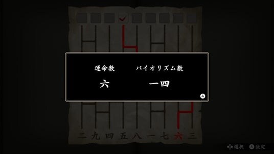 運命数は、本編中に与えられる「1~9」の無作為な数。