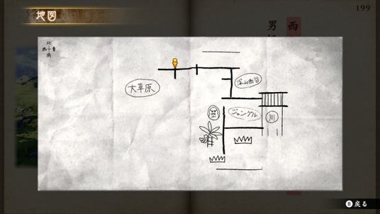 現在地を示す「地図」、どこでも記録・再開が可能な「しおり」、持ち物の自動管理など