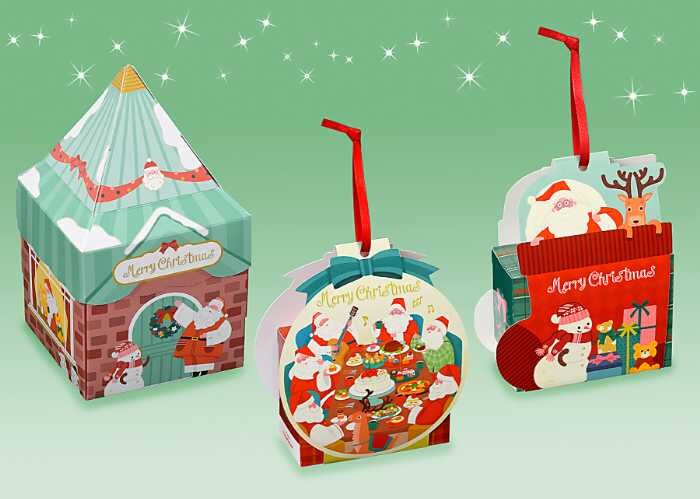 特に、「サンタ&くつした」や「サンタ&トナカイ」など、サンタさんたちが描かれたボックスは、可愛らしさ満点!