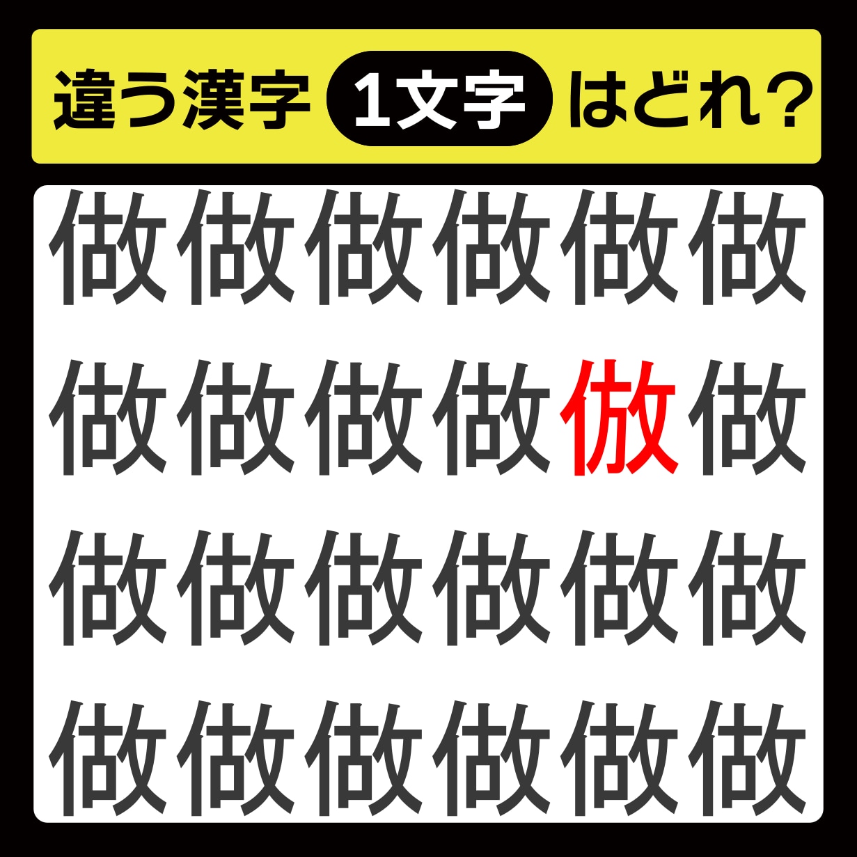 違う漢字は、上から2行目、右から2番目の文字でした!