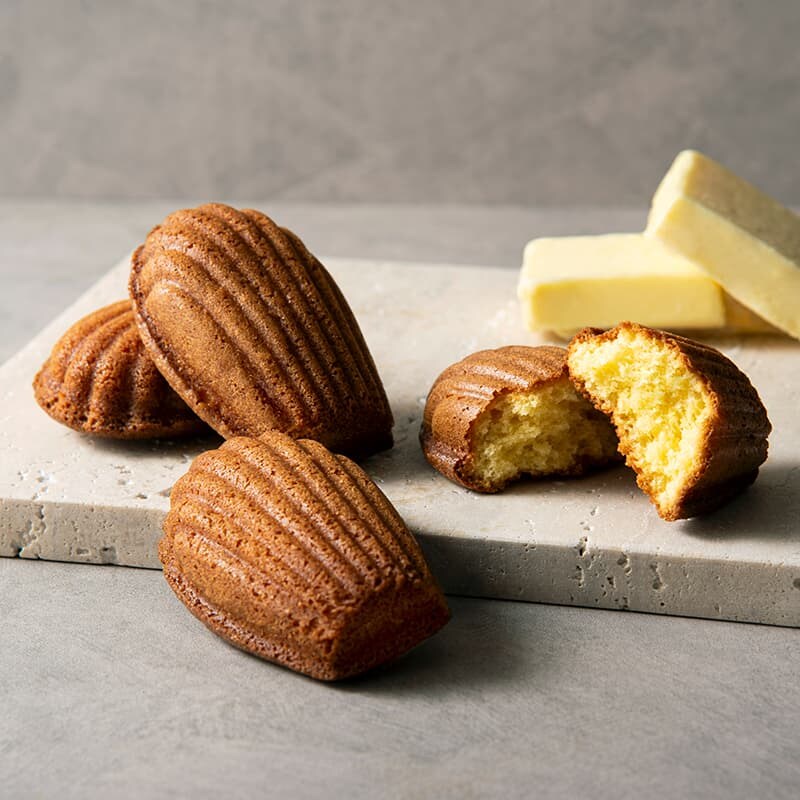 「発酵バターのフィナンシェ」は、ひと手間かけて焦がしバターにしたフランス産発酵バターと、スペイン産マルコナ種アーモンドを50%ブレンドしたアーモンドプードルを使用。しっとりとした口当たり、ふんわり食感の「発酵バターのマドレーヌ」は、アーモンドパウダーのうまみに、レモンの香りがさわやかな余韻を残します。